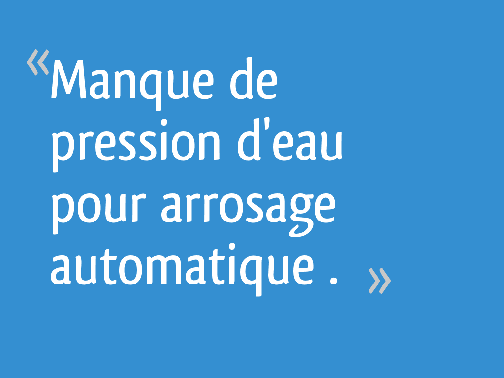 Probleme Pression Arrosage Automatique